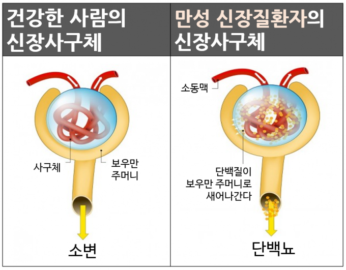 • ์‹ ์žฅ์˜ ์‚ฌ๊ตฌ์ฒด๊ฐ€ ์ง€์†์ ์œผ๋กœ ๊ณผ๋‹ค ์—ฌ๊ณผ(hyperfiltration)๊ฐ€ ๋˜๋ฉด ๊ฒฐ๊ตญ ์‚ฌ๊ตฌ์ฒด ์†์ƒ ๋ฐ ์ œ๊ฑฐ(glomerulosclerosis)๊ฐ€ ์ง„ํ–‰๋ฉ๋‹ˆ๋‹ค. PMC
