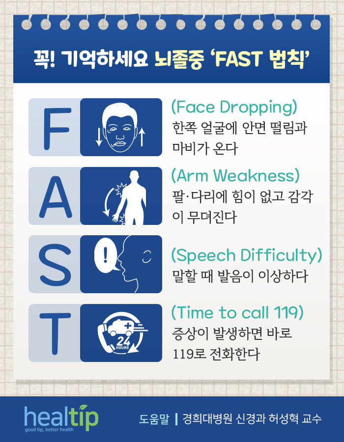 - ์์ ๋ง์๋๋ฆฐ FAST(Face, Arm, Speech, Time) ๋ฒ์น์ ๋๊ฒฝ์์ ์ ์ํ ์ธ์งํ๊ณ ๋์ํ๊ธฐ ์ํ ๋งค์ฐ ์ ์ฉํ ๊ธฐ์ต ๋๊ตฌ์
