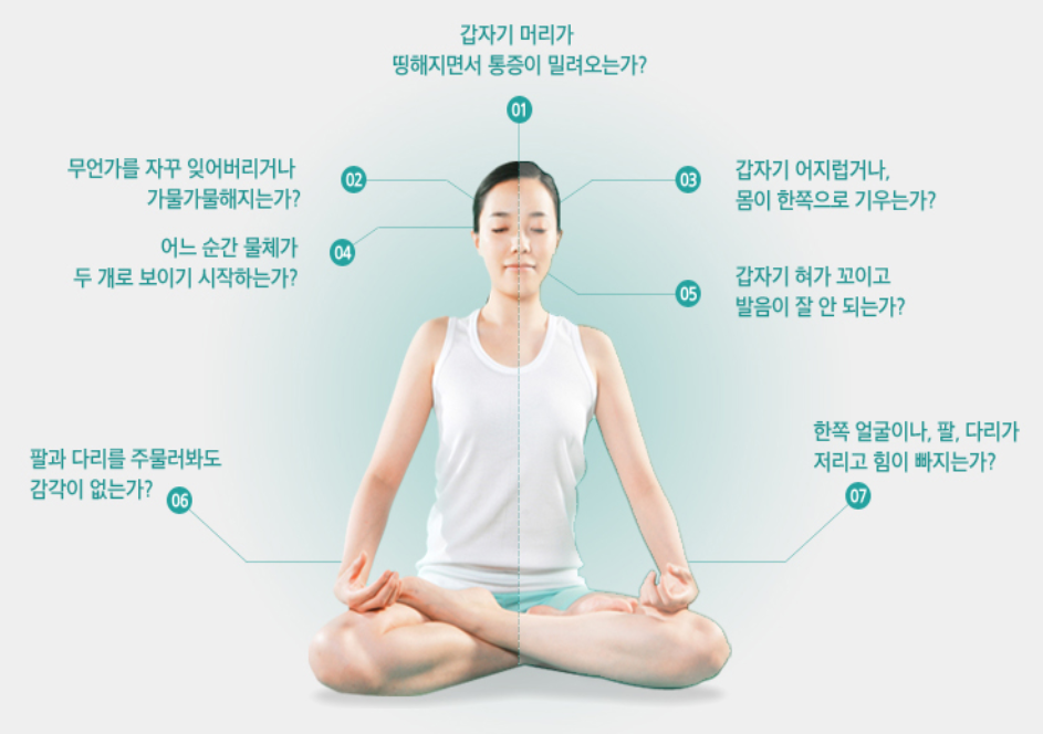 - T (Time): ์ฆ์์ด ๋ํ๋ฌ๋ค๋ฉด ์ฆ์ ๋ณ์์ผ๋ก! www.stroke.org+1